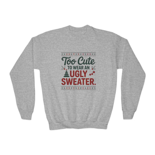 Too Cute to Wear an Ugly Sweater – Cute Christmas Sweatshirt for Kids | Holiday Graphic Pullover