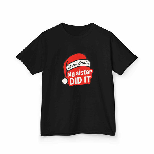 Dear Santa My Sister Did It Shirt – Funny Christmas T-Shirt for Kids & Adults | Matching Family Christmas Pajama Shirts | Santa Hat Holiday Graphic Tee