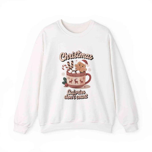 Cute Gingerbread Hot Cocoa Christmas Sweatshirt – “Calories Don’t Count” Holiday Crewneck – Cozy Winter Aesthetic Gift for Women & Teens